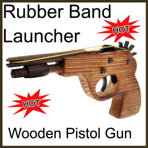 Description Hand Made wooden pistol repeater rubberband gun. The trigger and rubberband wheel are made of plastic. The wheel holds 5 rubberbands at one time. Each pull of the trigger will release a rubber band. Comes with a small package of rubber bands. Please note: Because the guns are hand-made, every one will be a slightly different cut of wood. These guns are brand new, first quality and in their original packaging, but because they are hand made, you will find occasional imperfections or irregularities. These will not affect the guns ability to shoot or function. Specification Dimensions: 8.86 in x 4.33 in x 0.83 in Weight: 3 oz Features Features High quality Durable to use Lightweight, easy to hold Made of solid wood material Great gift for children or adults